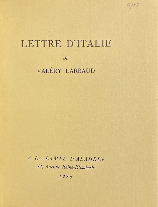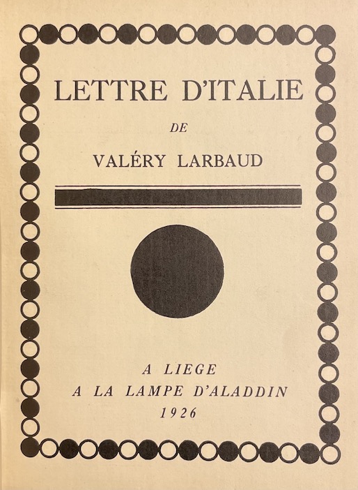 LARBAUD (Valery) Lettre d’Italie. Liège, La Lampe d’Aladdin, 1926.