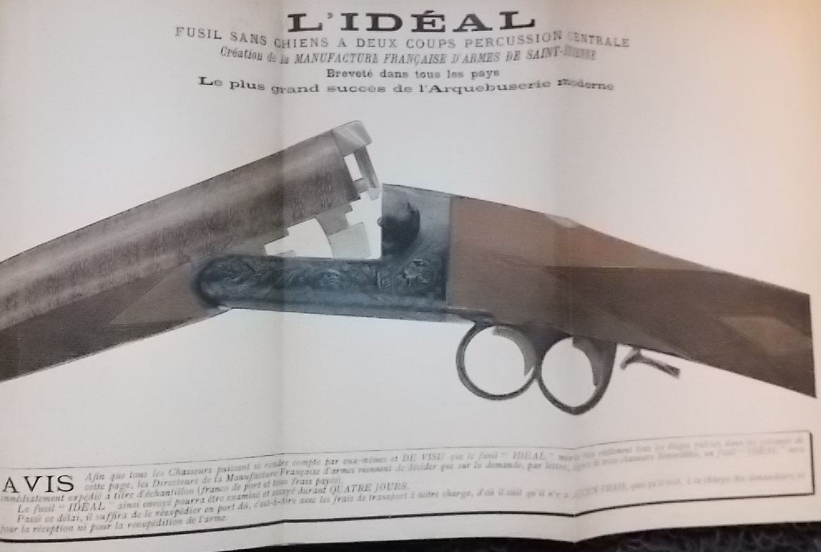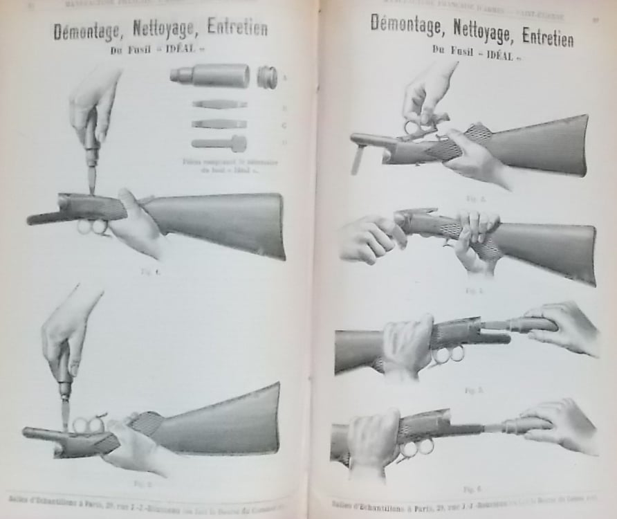Contient: Le fusil en théorie et en pratique, Les chiens de chasse, Pêche et pisciculture, La vélocipédie pratique, etc…. Avec à la suite le catalogue de la Manufacture d’Armes, abondamment illustré . Ouvrage bien complet des 8 planches couleurs de chiens dessinées par Mahler, des 4 pages en couleurs des cartouches et munitions, des 2 planches dépliantes en couleurs en 3 parties de fusils et 1 planche dépliante en 2 parties en couleurs « Bicyclette Superbe – Création de la société HIRONDELLE à Saint-Etienne. Nombreuses illustrations en noir et blanc. Très bel exemplaire.