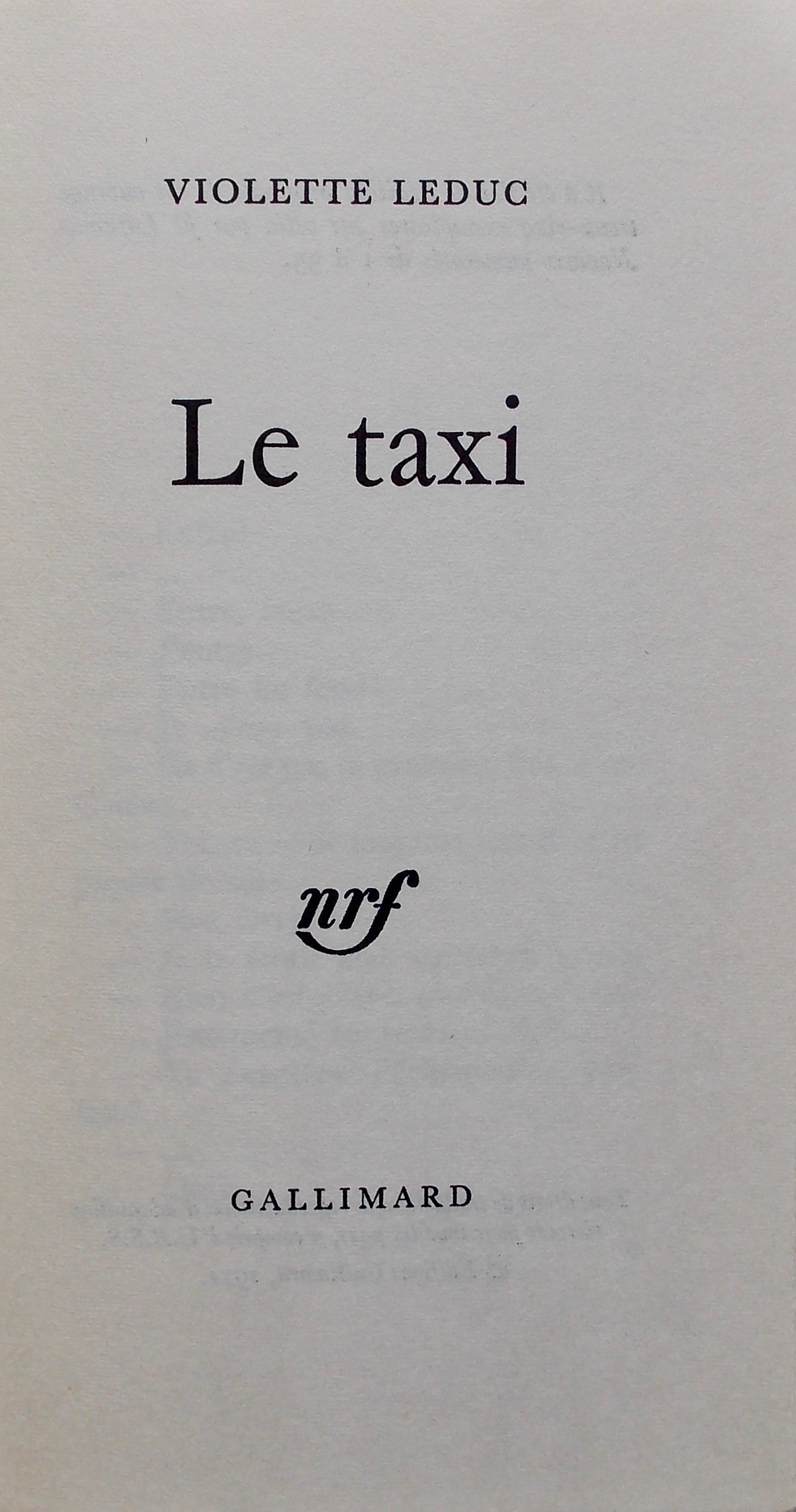 LEDUC (Violette) Le taxi. Paris, Gallimard, 1971.