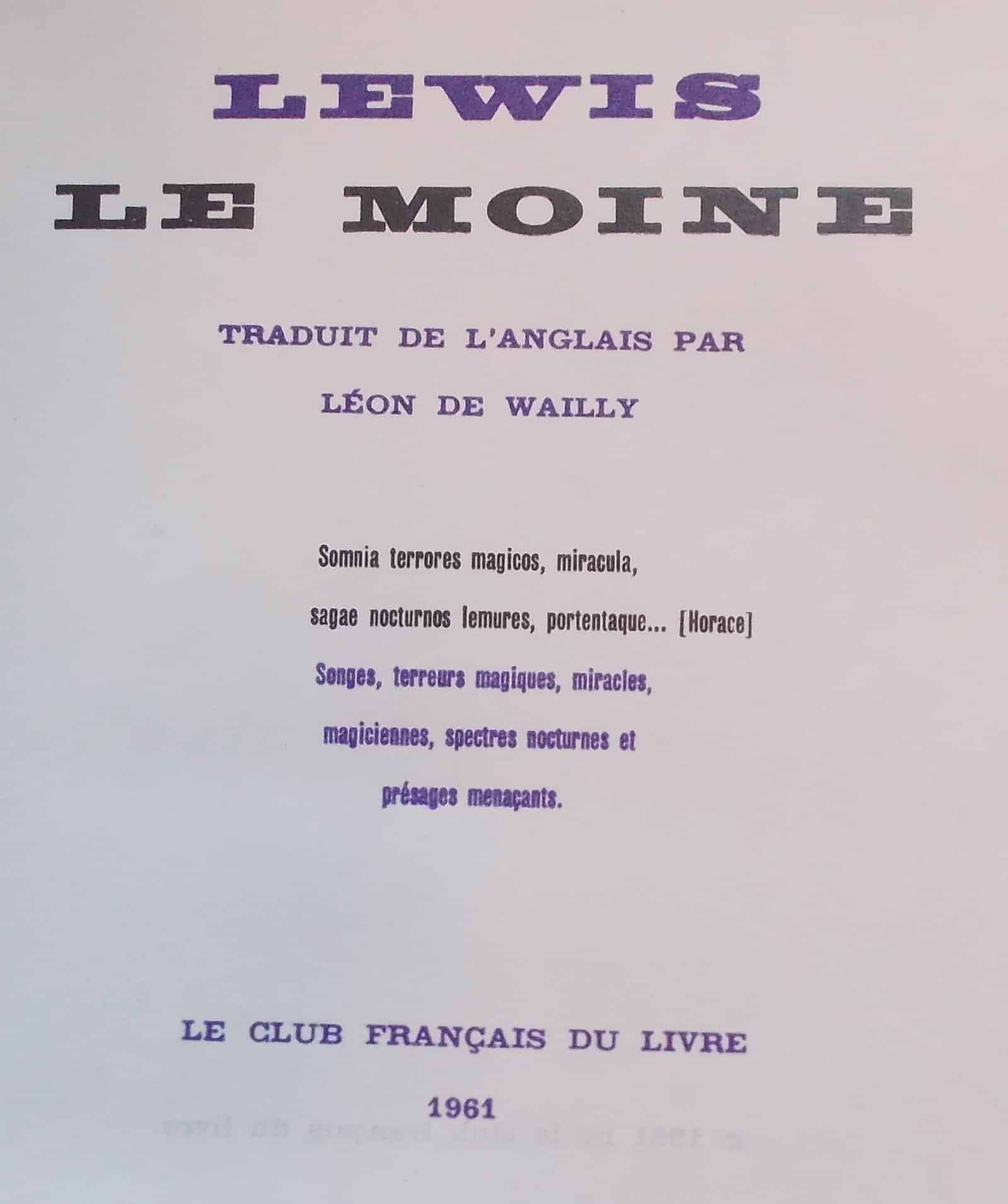 LEWIS (M.-G.) Le moine. Paris, Le Club Français du Livre, 1961.