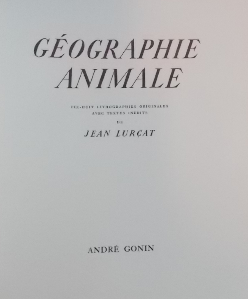[LURCAT] – LURÇAT (Jean) Géographie animale. Dix-huit lithographies originales avec textes inédits. Lausanne, André Gonin, 1948.