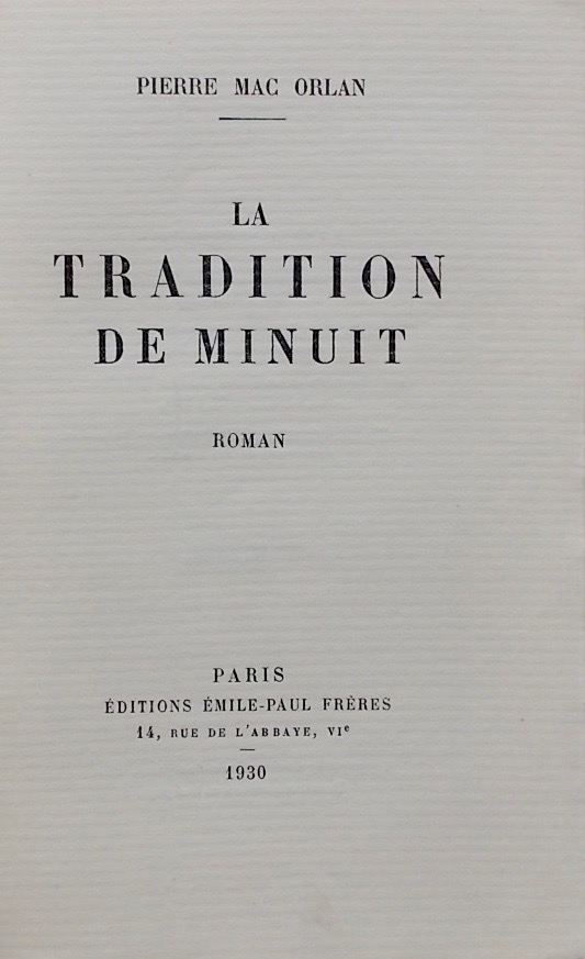MAC ORLAN (Pierre) La tradition de minuit. Paris, Emile-Paul Frères, 1930.