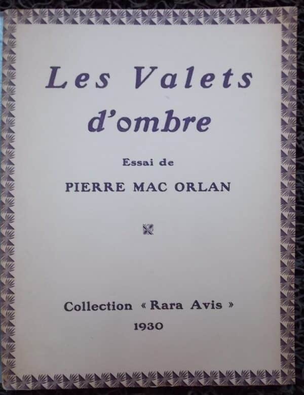 MAC ORLAN (Pierre) Les valets d’ombre. Paris, aux Editions de La Belle Page (coll. « Rara Avis »), 1930.