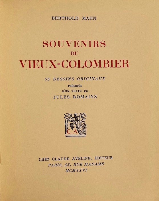 MAHN (Berthold) Souvenirs du Vieux-Colombier. 58 dessins originaux… Paris, Claude Aveline, 1926.