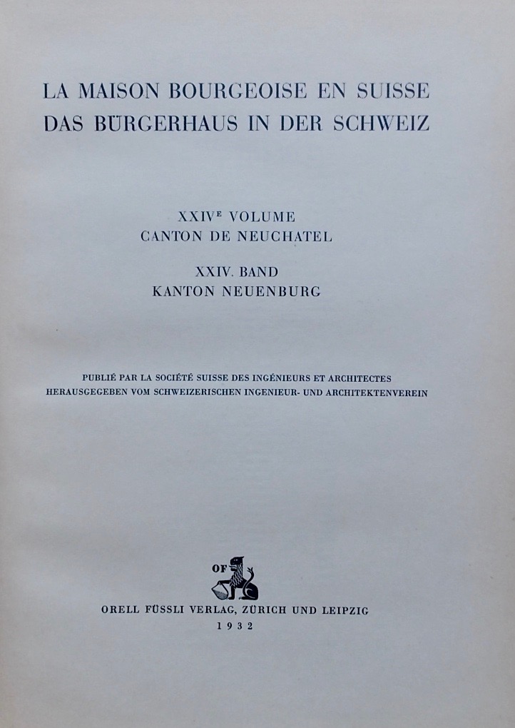 Maison La maison bourgeoise en Suisse. Vol. XXIV: Le canton de Neuchâtel. Zurich, Orell Füssli, 1932.