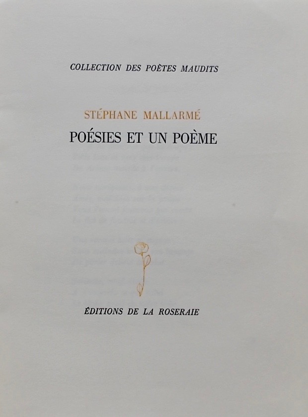 MALLARME (Stéphane) Poésie et un poème. [Rome], Edition de La Roseraie (collection des Poètes Maudits), 1945.