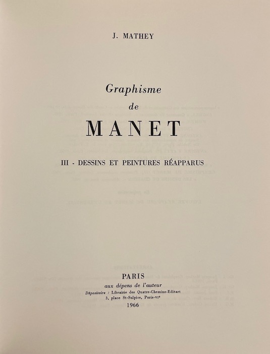[MANET] – MATHEY (J.) Graphisme de Manet. III: Dessins et peintures réapparus. Paris, aux dépens de l’auteur, 1966.