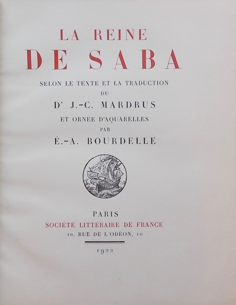 MARDRUS (J.-C.) trad. La Reine de Saba. Paris, Société Littéraire de France, 1922.