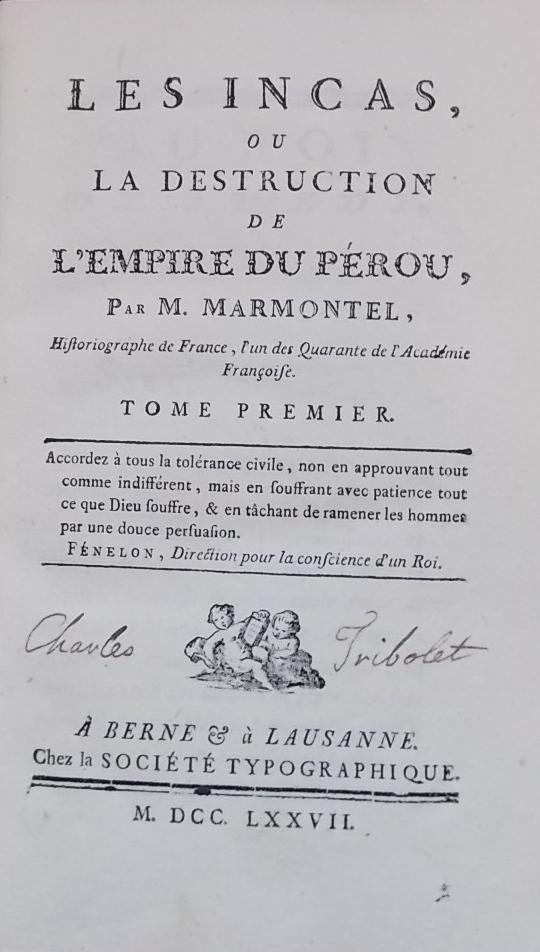 MARMONTEL (Jean-François) Les Incas, ou la destruction de l’Empire du Pérou. Berne & Lausanne, Société Typographique, 1777.