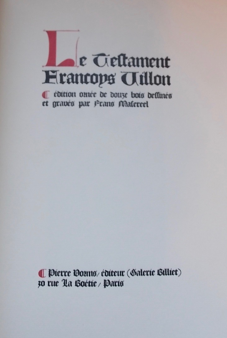 ![[MASEREEL] - VILLON (Françoys) Le testament. Paris, Pierre Vorms (Galerie Billiet), 1930.](https://cabinetamateur.ch/wp-content/uploads/2025/11/32706_1.jpg)