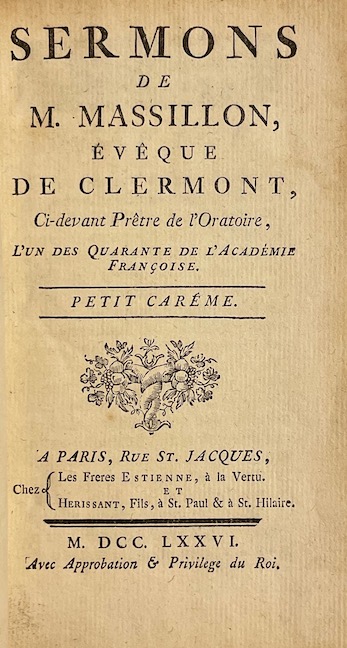 MASSILLON (Jean-Baptiste, évêque de Clermont) Sermons. Petit Carême. Paris, chez Les Frères Estienne et Jean Herissant, 1776.
