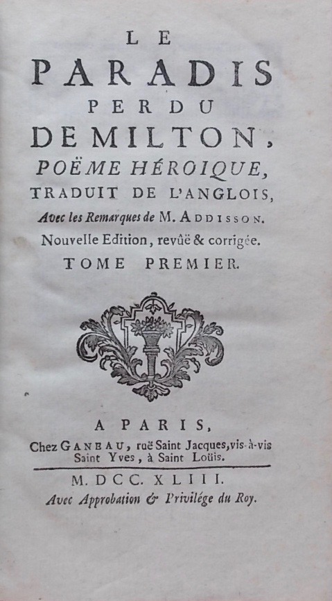 ![MILTON (John) Le paradis perdu, poème héroïque traduit de l'anglois, [suivi de] Le paradis retrouvé. A Paris, chez Ganeau, 1743,](https://cabinetamateur.ch/wp-content/uploads/2025/11/36318_1.jpg)