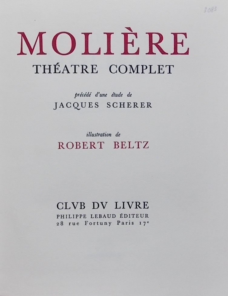 MOLIERE Théâtre complet. Paris, Club du Livre, 1964.