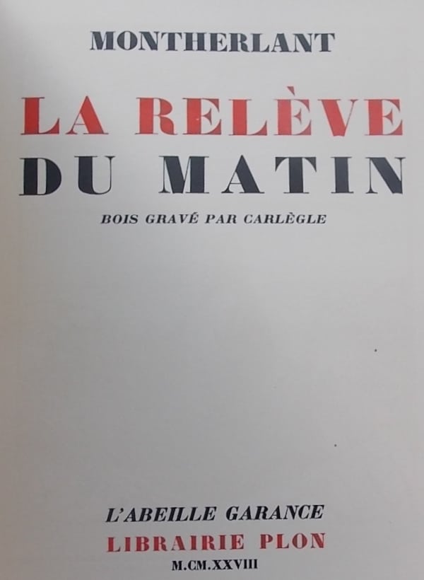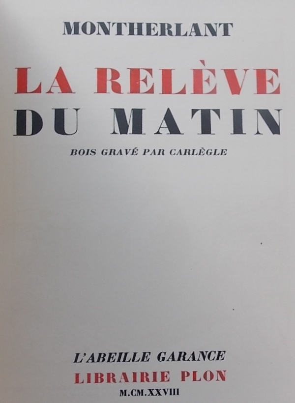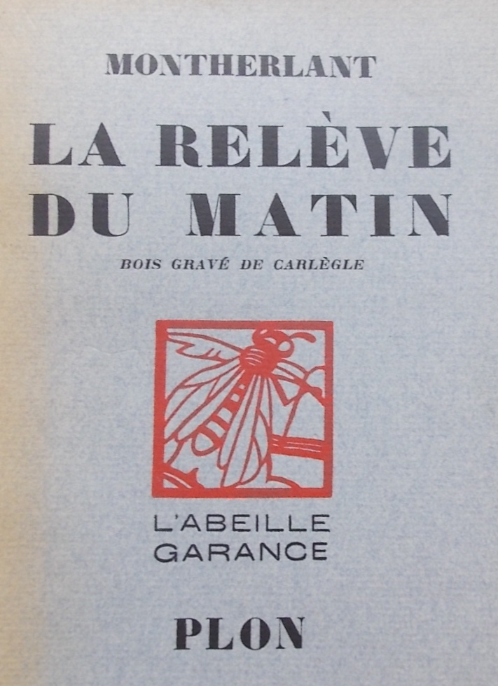 MONTHERLANT (Henry de) La relève du matin. Paris, Plon (L’Abeille Garance), 1928.