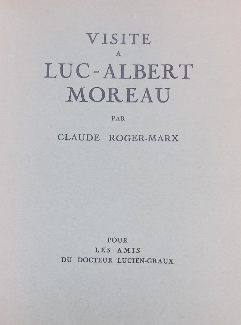 [MOREAU] – ROGER-MARX (Claude) Visite à Luc-Albert Moreau. Sans lieu, Pour les Amis du Docteur Lucien-Graux, 1929.