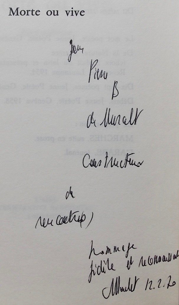 MOUCHET (Charles) Morte ou vive. Essai poétique. Lausanne, L’Aire – Rencontre, 1969.