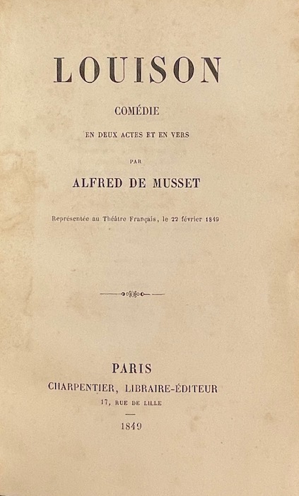 MUSSET (Alfred de) Louison. Comédie en deux actes et en vers. Paris, Charpentier, 1849.