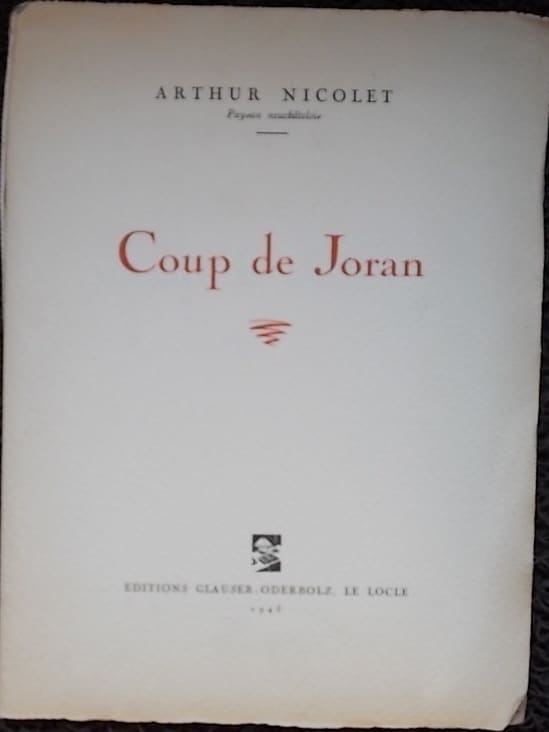 NICOLET (Arthur) Coup de Joran. Le Locle, Glauser-Oderbolz, 1945.