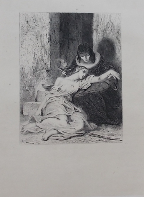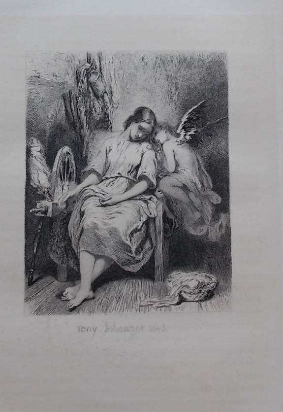 Illustré de 8 eaux-fortes et de 2 vignettes gravées sur bois de Tony Johannot. Second tirage des illustrations (la première date de 1846). Exemplaire très frais, dans une reliure plutôt modeste, mais néanmoins en bon état . [Vicaire]