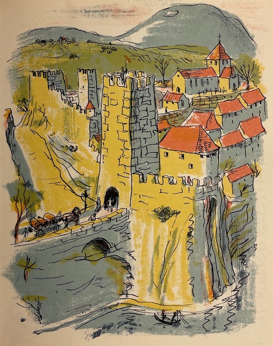 Edition originale numérotée 1/800 exemplaires sur vélin des Chanoines (après 20 exemplaires de tête sur vergé… pour ceux qui connaissent la monnaie). Album entièrement autographié, abondamment illustré de dessins dans texte et de planches lithographiques en couleurs. Une des plus belles réussites de l’artiste. Exemplaire enrichi d’un envoi autographe signé sur la page de faux-titre.