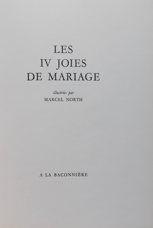 NORTH (Marcel) & RYCHNER (Jean) Les IV joies de mariage. (Neuchâtel), La Baconnière, 1957.