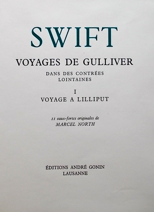 ![[NORTH] - SWIFT (Jonathan) Voyages de Gulliver dans des contrées lointaines. Volume I: Voyage à Lilliput. Volume II: Voyage chez les Houyhnhnms. Lausanne, Gonin (coll. Les Flambeaux), 1944-1946.](https://cabinetamateur.ch/wp-content/uploads/2025/11/41673_1.jpg)