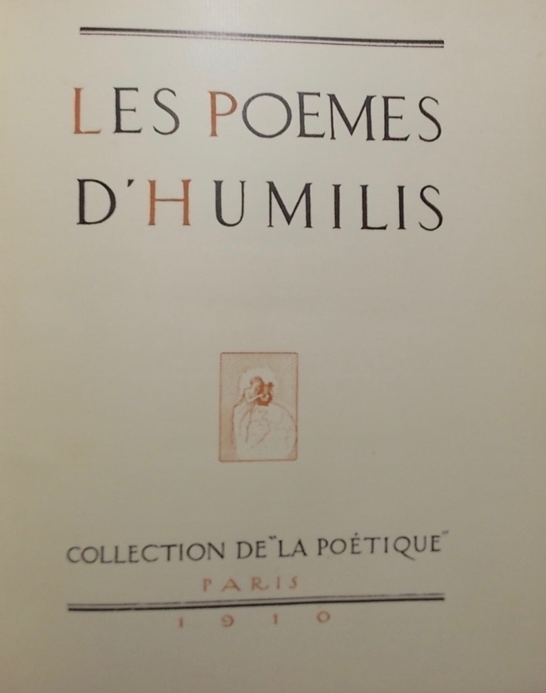 [NOUVEAU (Germain)] Les poèmes d’Humilis. Paris, Collection de La Poétique, 1910.