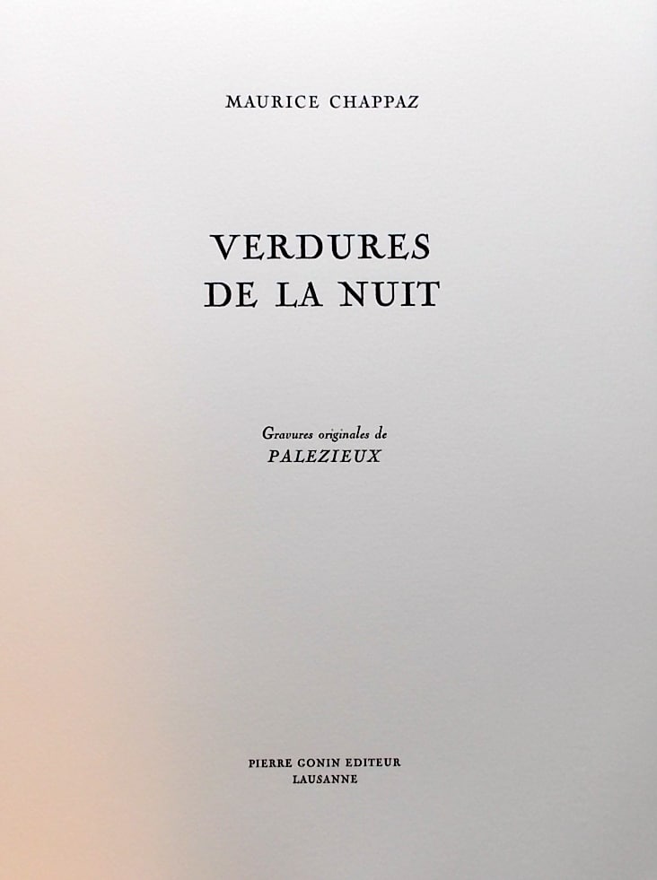 PALEZIEUX (Gérard de) – CHAPPAZ (Maurice) Verdures de la nuit. Lausanne, Pierre Gonin, 1992.