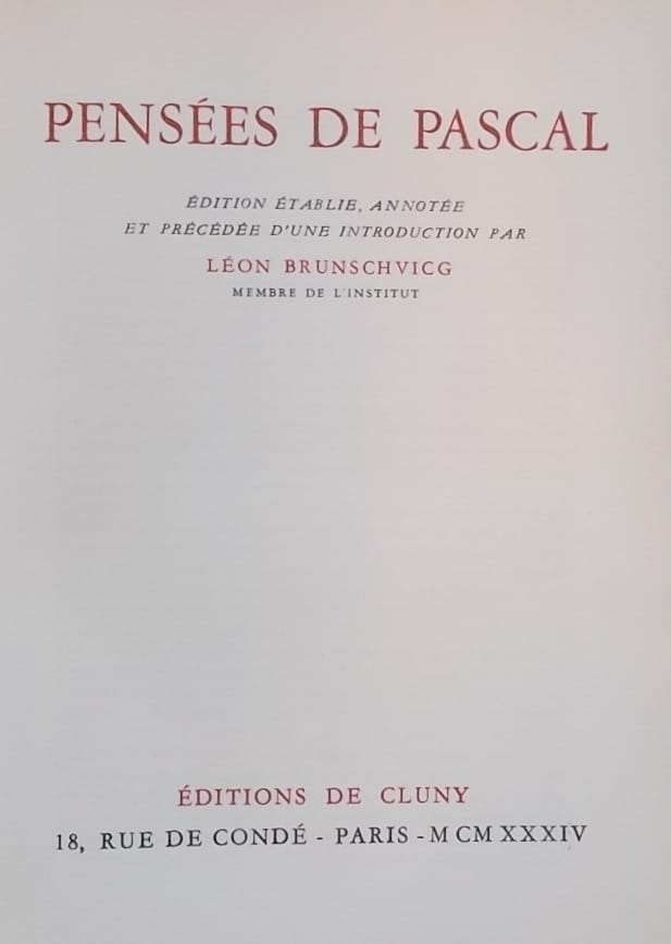PASCAL (Blaise) Pensées. Paris, Editions de Cluny, 1933.
