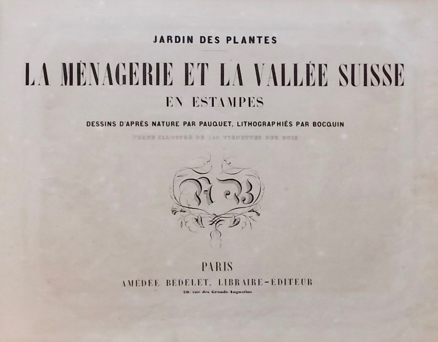 ![PAUQUET (Jean Louis Charles) Jardin des Plantes. La Ménagerie et la Vallée suisse en estampes. Paris, Amédée Bédelet , [1857]. – Image 3](https://cabinetamateur.ch/wp-content/uploads/2025/12/36486_3.jpg)