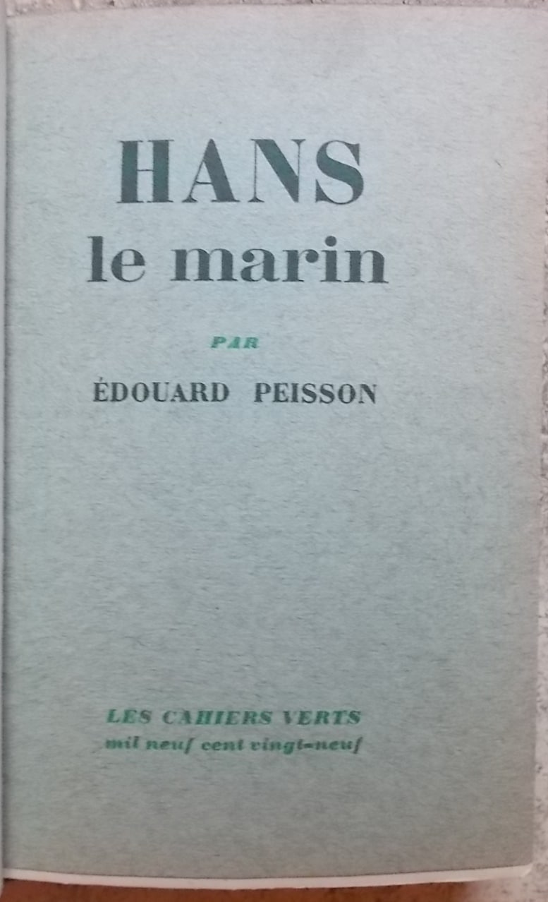 PEISSON (Edouard) Hans le marin. Paris, Grasset (coll. Les Cahiers Verts), 1929.