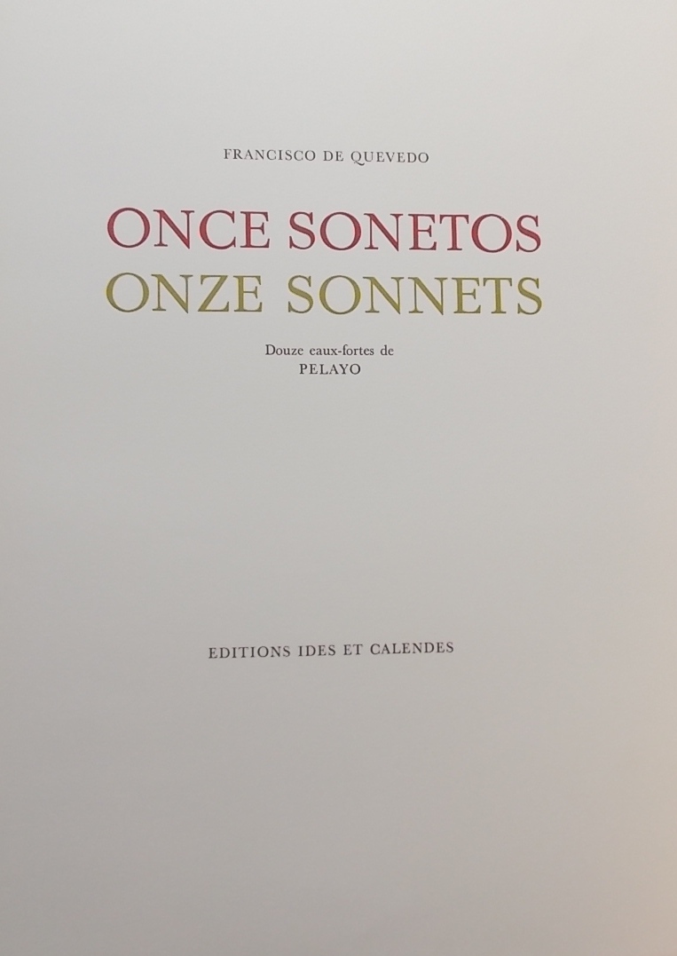 PELAYO (Orlando) – QUEVEDO (Francisco de) Once sonetos – Onze sonnets. Neuchâtel, Ides et Calendes, 1971.
