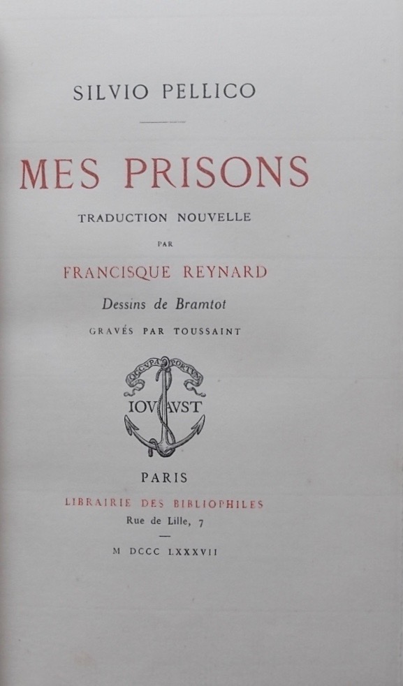 PELLICO (Silvio) Mes prisons. Paris, Jouaust – Librairie des Bibliophiles, 1887.