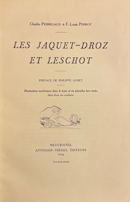 PERREGAUX (Charles) & PERROT (F.-Louis) Les Jaquet-Droz et Leschot. Neuchâtel, Attinger Frères, 1916.