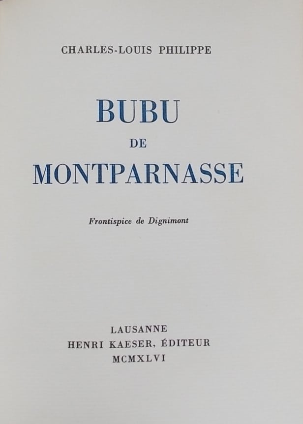 PHILIPPE (Charles-Louis) Bubu de Montparnasse. Lausanne, Henri Kaeser, 1946.