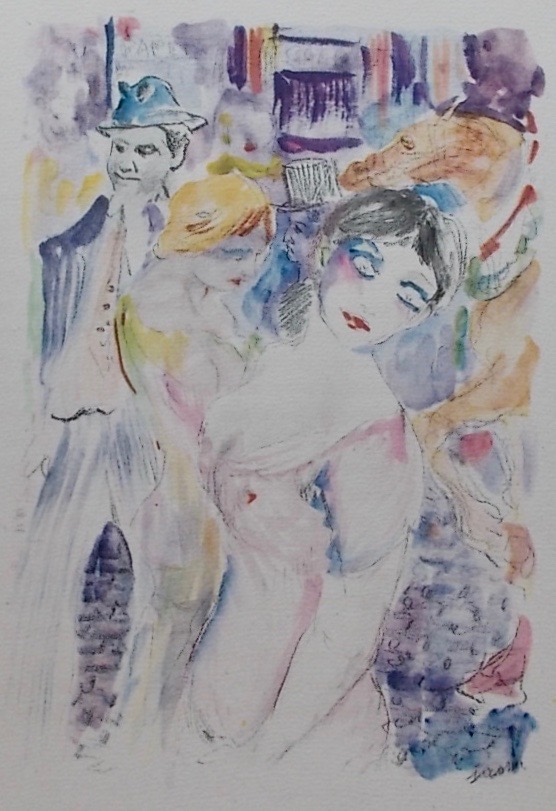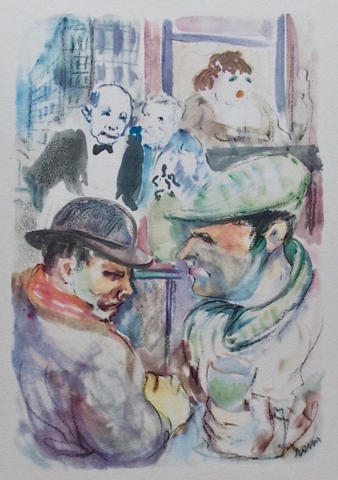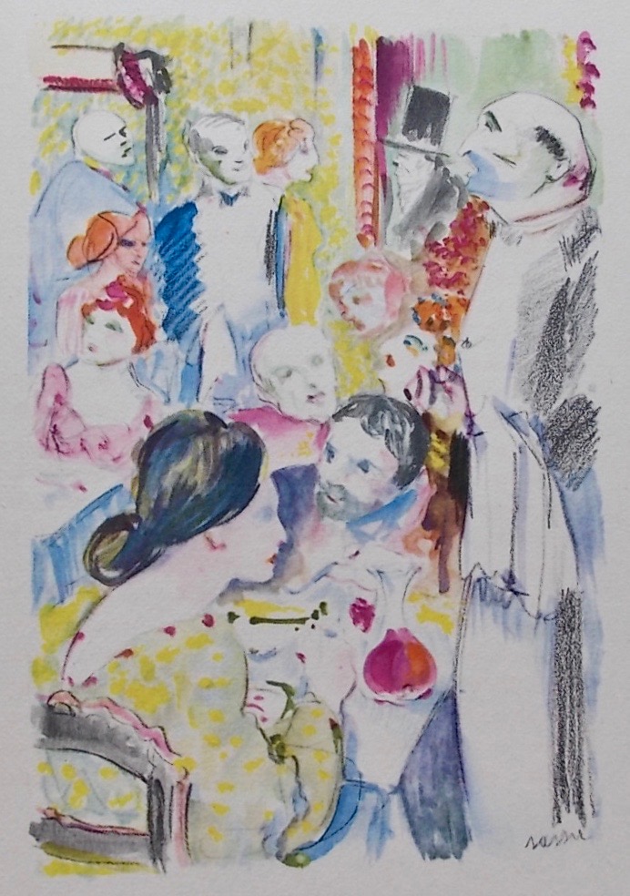 Edizione limitata di 115 copie (questa copia n° 78). Edizione bibliofila italiana illustrata con 22 acquerelli di Aligi Sassu (12 a piena pagina fuori testo e 10 nel testo). Una breve prefazione dell’editore in italiano, altrimenti il testo di Bubu de Montparnasse è in francese. Il fragile pergamino stampato che copre la rilegatura è danneggiato, con mancanza, altrimenti una copia molto bella. Non molto comune.
