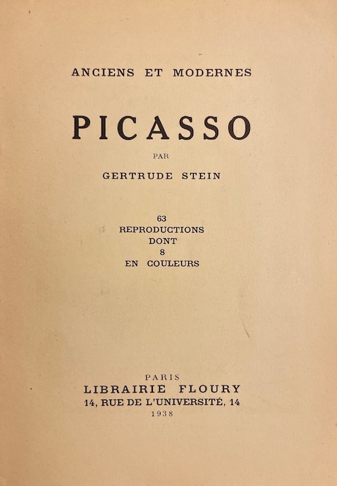 [PICASSO] – STEIN (Gertrude) Picasso. Paris, Floury (coll. Anciens et Modernes), 1938.