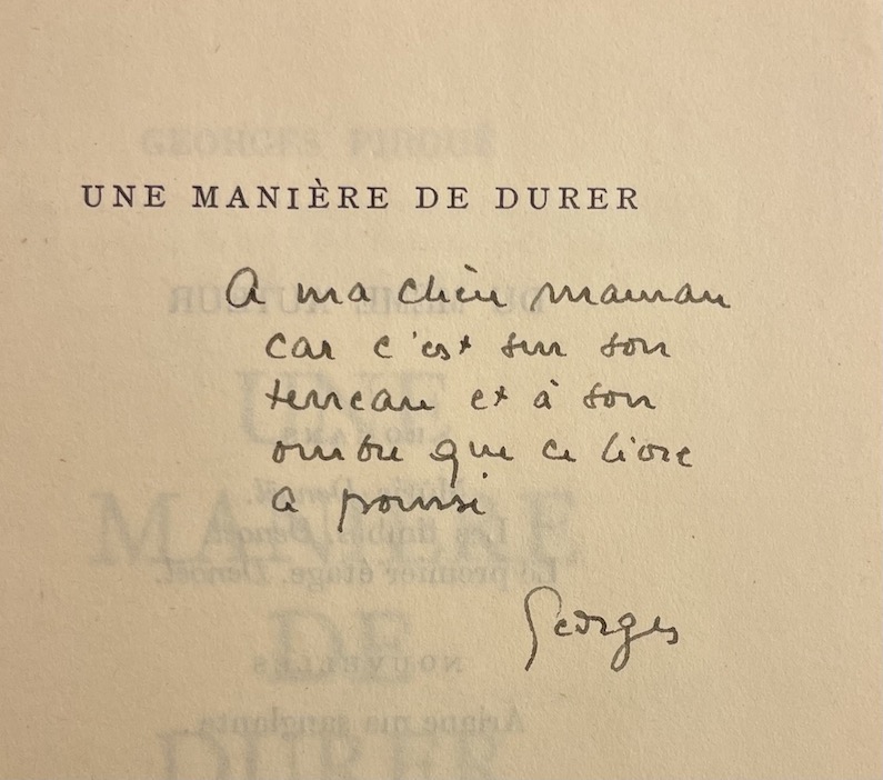 Edition originale ordinaire (après seulement 10 exemplaires numérotés). Enrichi d’un envoi autographe signé (Georges) de l’auteur à sa maman.
