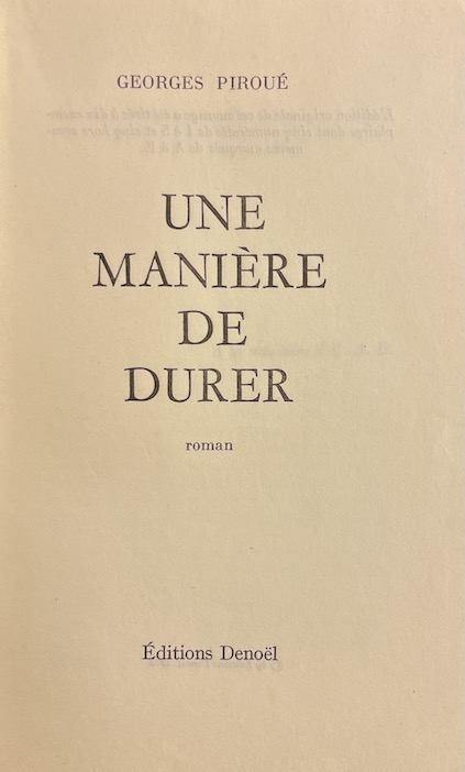 PIROUE (Georges) Une manière de durer. Paris, Denoël, 1962.