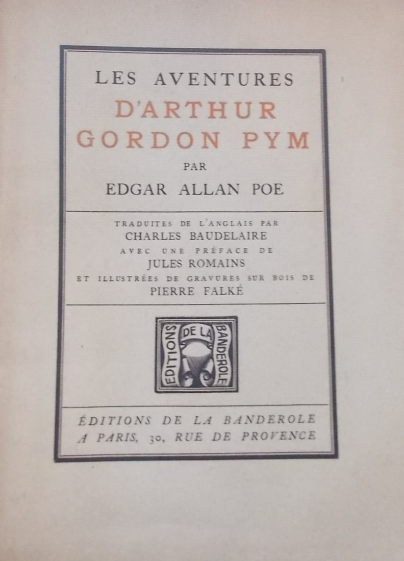 POE (Edgar Allan) Les Aventures d’Arthur Gordon Pym de Nantucket. Paris, Editions de La Banderole, 1921.