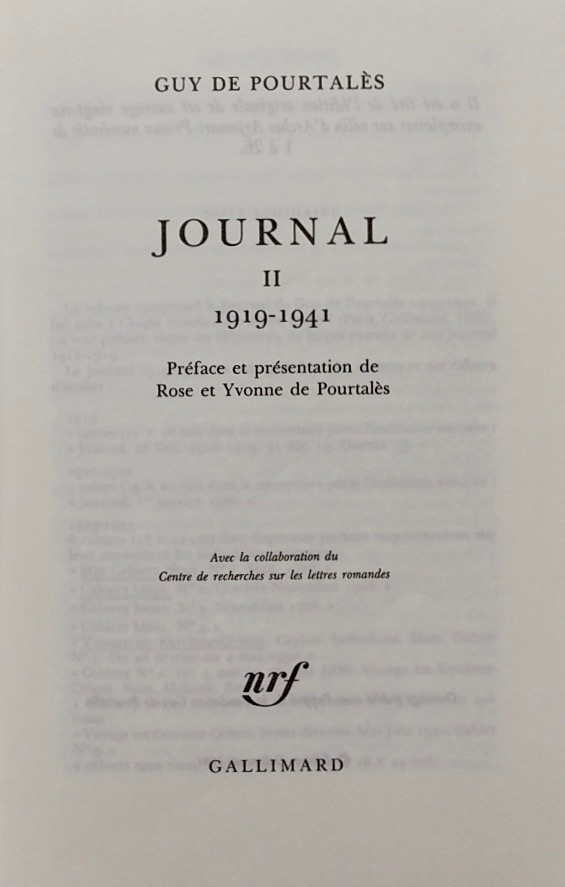 POURTALES (Guy de) Journal II (1919-1941). Paris, Gallimard (coll. Blanche), 1991.