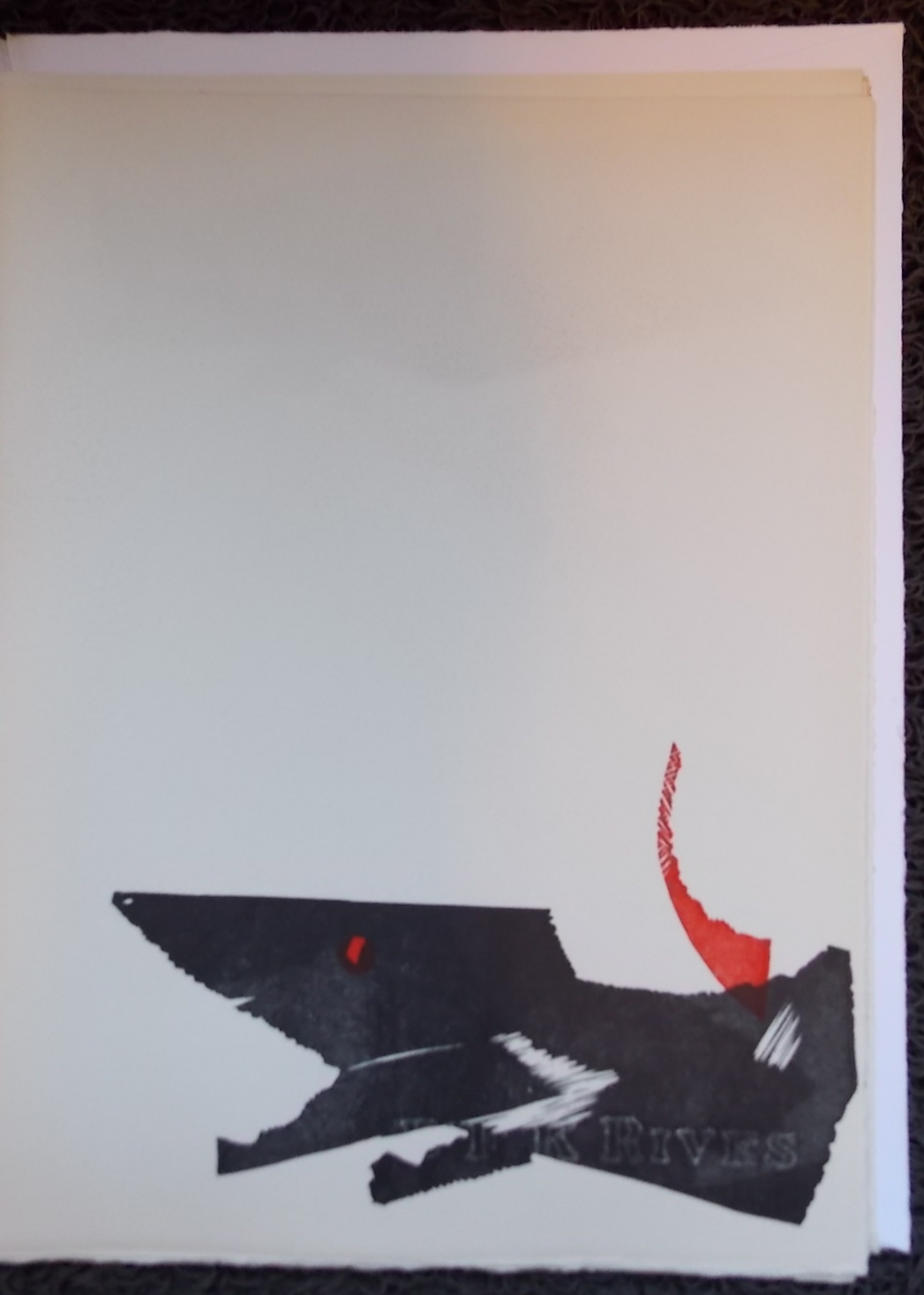 Edition originale numérotée en chiffres romains XXXVI / L exemplaires sur vélin de Rives à la cuve (seul tirage avec 20 exemplaires hors commerce sur offset licorne). Illustré de linos et de bois en couleurs d’après des collages de Anna Staritsky. Signé par l’auteur-éditeur et par l’artiste à la justification. Petits accrocs à la couverture.
