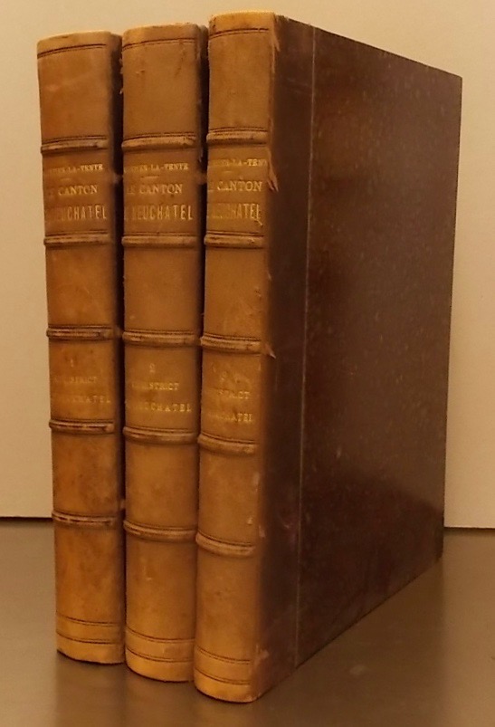 La plus célèbre et justement recherchée étude sur le canton de Neuchâtel. Avec de nombreuses illustrations originales, des reproductions d’anciennes gravures et quelques cartes. Quelques frottements aux reliures, sinon bel exemplaire.