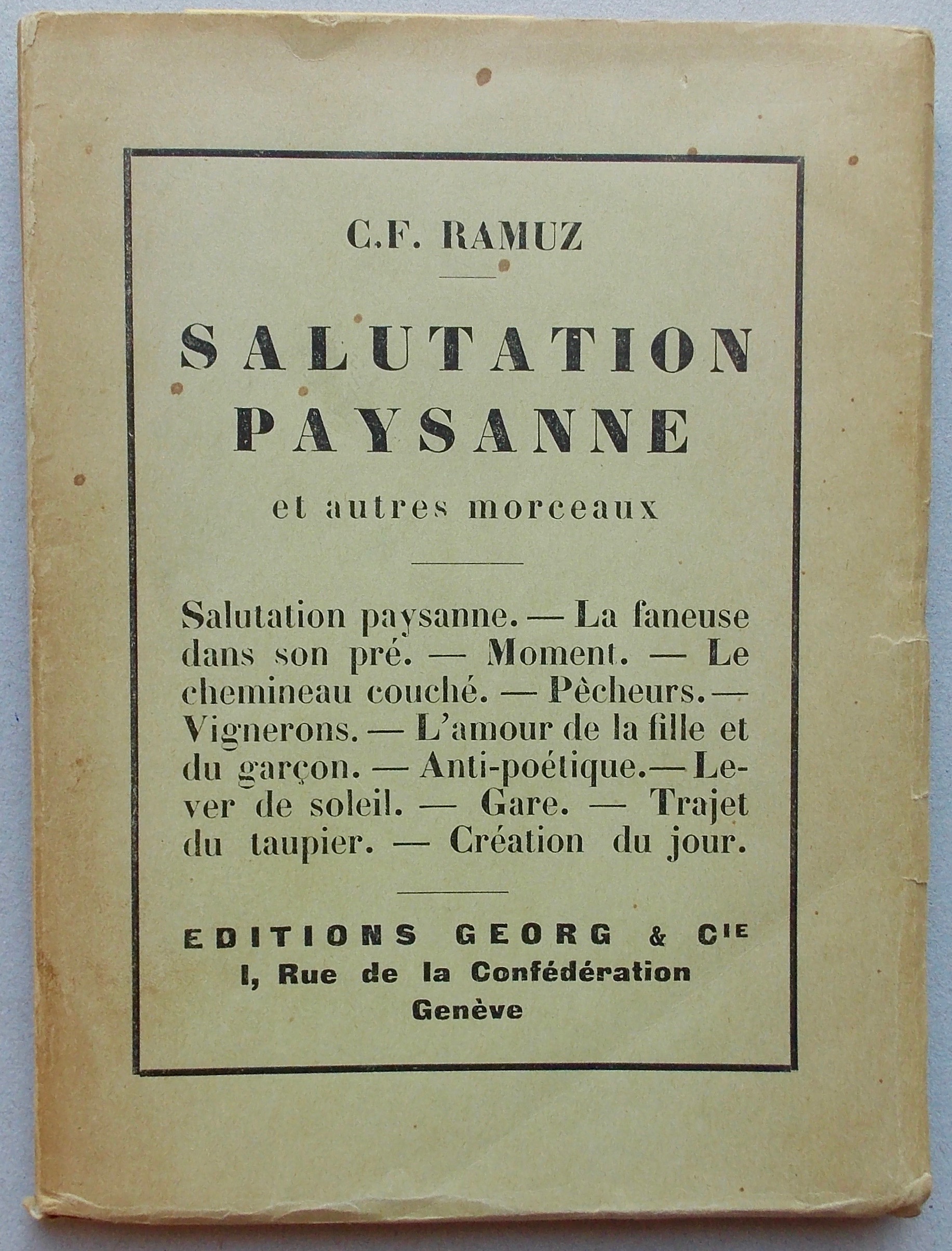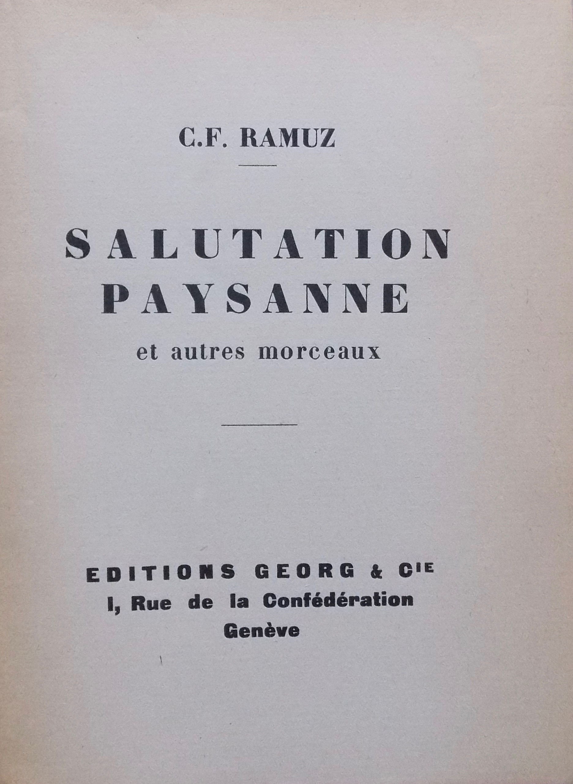 RAMUZ (Charles Ferdinand) Salutation paysanne, et autres morceaux. Genève, Georg & Cie, [1921].