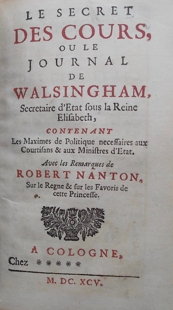 [REFUGE (Eustache de)] Le secret des cours, ou le journal de Walsingham. Cologne, chez ****, 1695.
