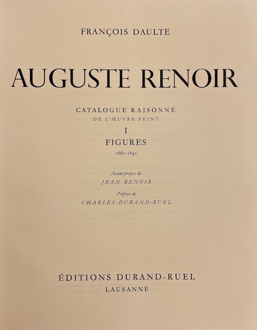 [RENOIR] – DAULTE (François) Auguste Renoir. Catalogue raisonné de l’oeuvre peint I: Figures (1860-1890). Lausanne, Editions Durand-Ruel, 1971.