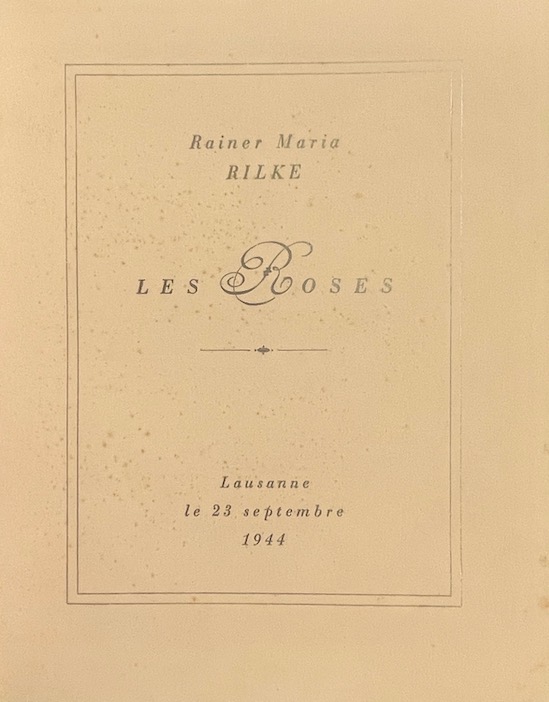 RILKE (Rainer Maria) Les roses. Lausanne, [Roth & Sauter – Au Verseau], 1944.