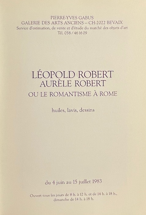 [ROBERT (Léopold & Aurèle)] – COLLECTIF Léopold Robert – Aurèle Robert, ou le romantisme à Rome. Huiles, lavis, dessins. Bevaix, Galerie des Arts Anciens – Pierre-Yves Gabus, 1983.