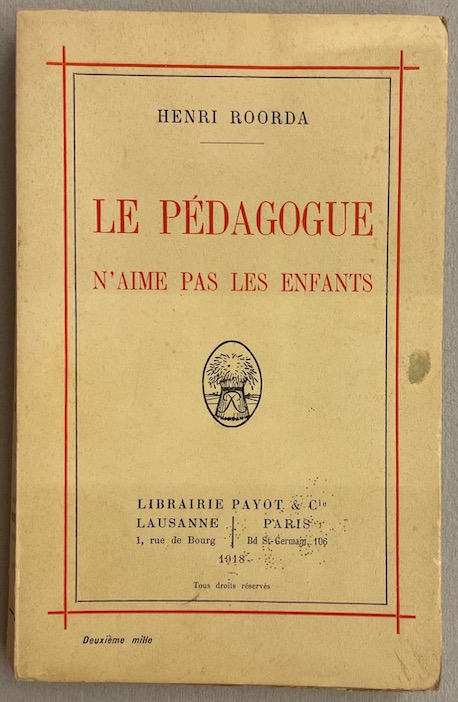 ROORDA (Henri) Le pédagogue n’aime pas les enfants. Lausanne et Paris, Payot & Cie, 1918.