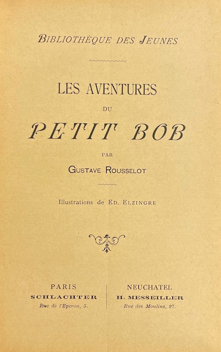ROUSSELOT (Gustave) Les aventures du petit Bob. Paris, Schlachter et Neuchâtel, Messeiller (coll. Bibliothèque des Jeunes), [1897].